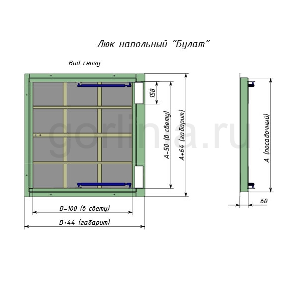 - Съемная ручка под четырехгранную личинку замка.