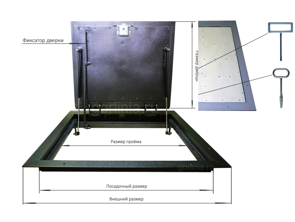 - фурнитуры: фиксатор обратного хода дверки, ключ от замка.